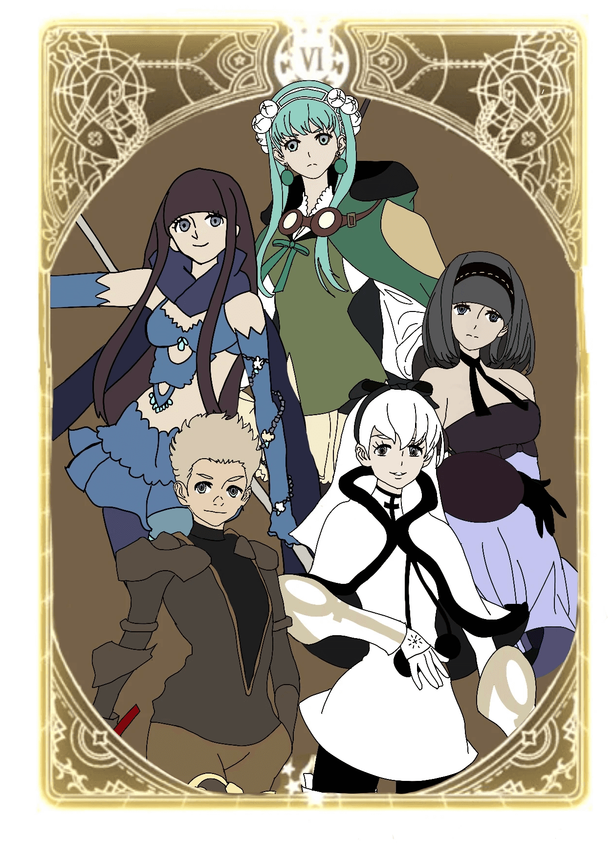 Maidens & IntonersInspired by the thematic resonance and narrative similarities between the video game "Voice of Cards" and the characters in "Drakengard 3," I delved into the creative realm of fanart. Drawing upon the unique personas and intertwined stories, I envisioned the protagonists of "Voice of Cards" donning the distinctive costumes of their counterparts in "Drakengard 3." This fusion allowed me to visually explore the connections that exist between these two worlds, celebrating their shared traits and thematic depth while paying homage to their captivating narratives through my artwork.